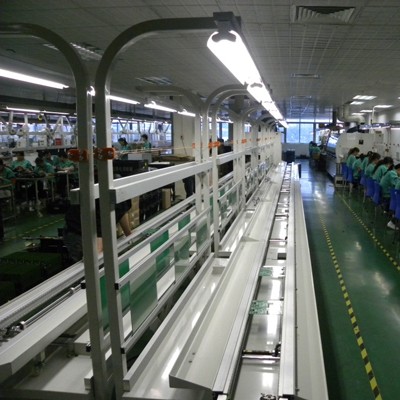 3.手推插件线采用铝型材导轨作为输送介质,所以该线体摩擦力小,无噪音,也无需加任何润滑油,对所输送的印制板无任何污染。
