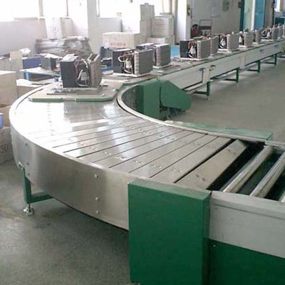 转弯链板线整个输送为平面,适合较大的工件在上面作业和输送,也可在链板上装工装夹具,优点载荷大,运行平稳,工件能直接放在线上输送。